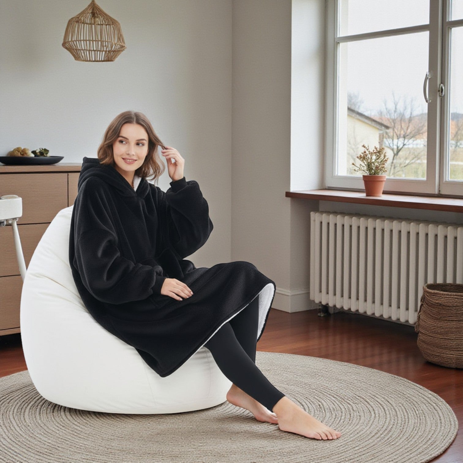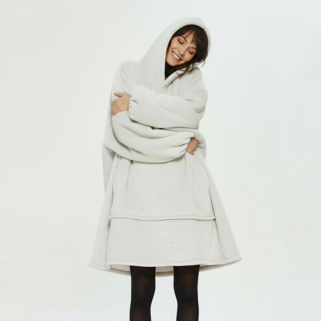 Forkæl dig selv med den ultimative hyggeoplevelse. - En Hoodie som er skabt som et bærbart tæppe i luksuriøs kvalitet, der omslutter dig i blød varme fra top til tå. Den er perfekt til kølige aftener på sofaen, lange seriemaraton eller afslappede morgener, hvor du bare vil have ren komfort uden at gå på kompromis med stil.